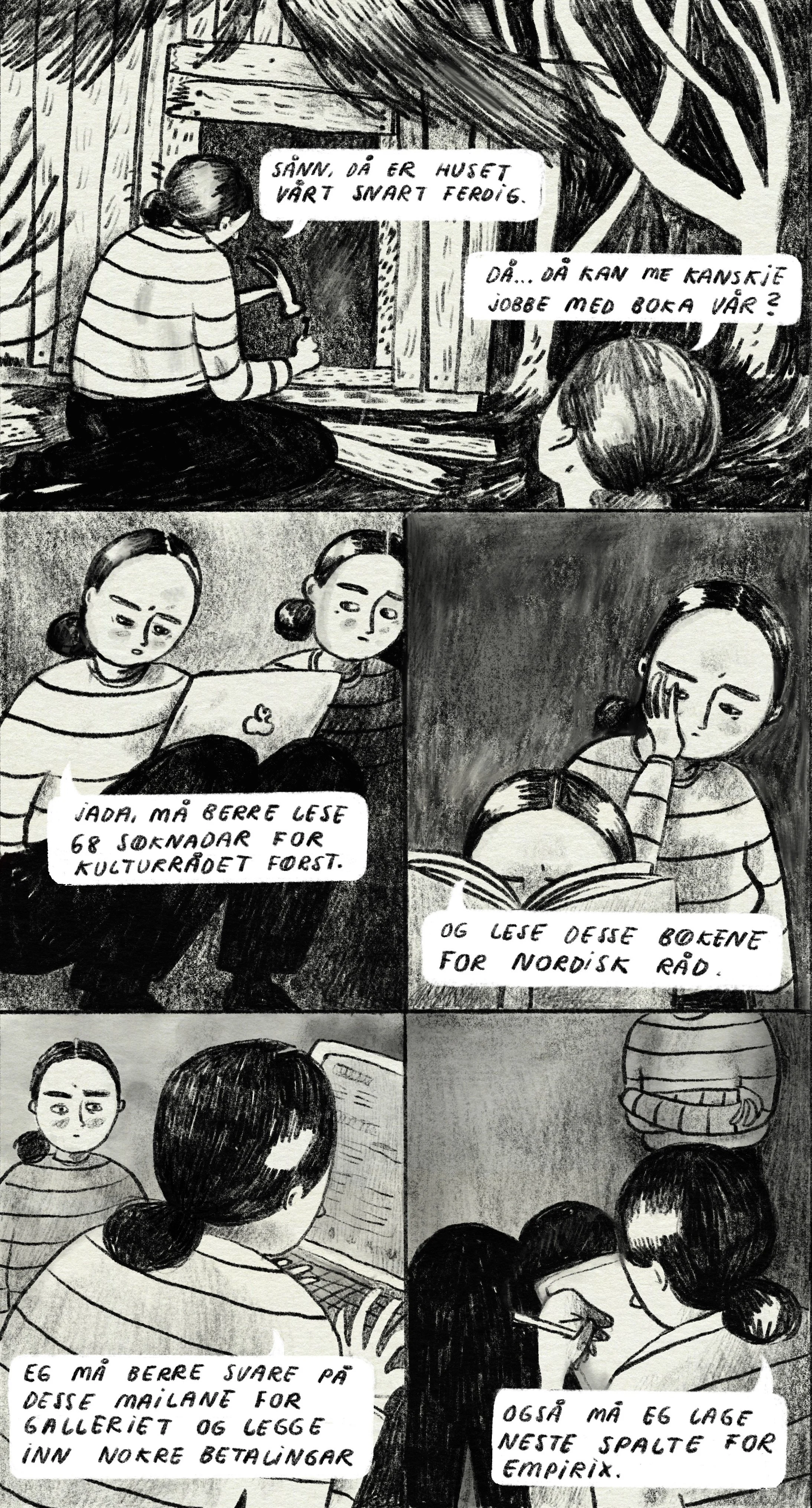 Tarjei, 13 år (2023) Bergen (2019) Lykketanna (2019) Hundedagar (2015) Blyanten (2021) Bok, blyant og snabba cash 2024 Festivalreportasje Angouleme 2023 Festivalreportasje Warszawa 2022 Illustrasjonsjobber Korall Korall akvarellmaling